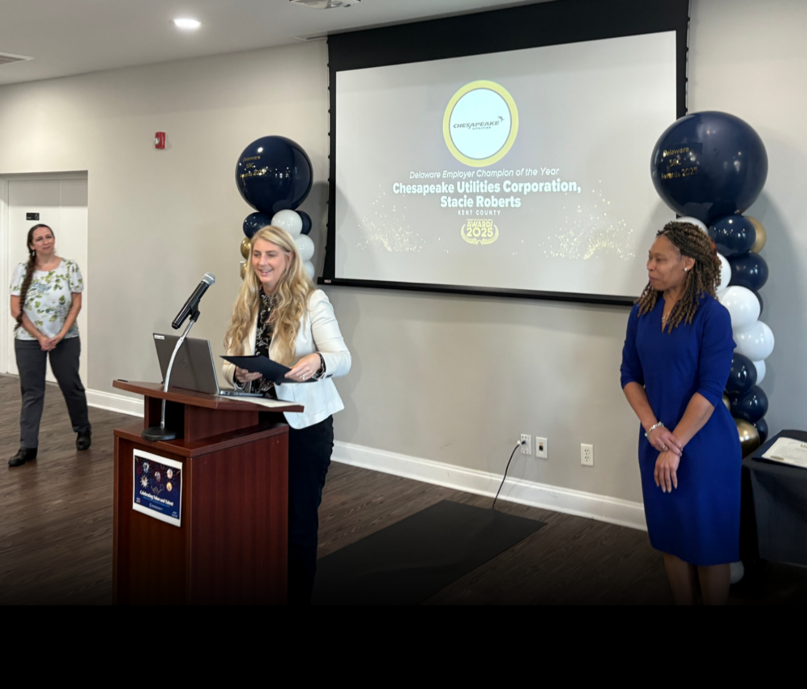 Dover, Del. – Chesapeake Utilities Corporation (NYSE: CPK) has been recognized as Employer Champion of the Year for Kent County by the Delaware Department of Labor’s Division of Vocational Rehabilitation and State Rehabilitation Council. This recognition celebrates employers who go above and beyond to promote accessibility and inclusion in the workplace and to help build equitable environments where all employees can succeed. It underscores Chesapeake Utilities’ commitment to employees and our communities and our ongoing efforts to create a workplace where every team member at all levels across the company can reach new heights.